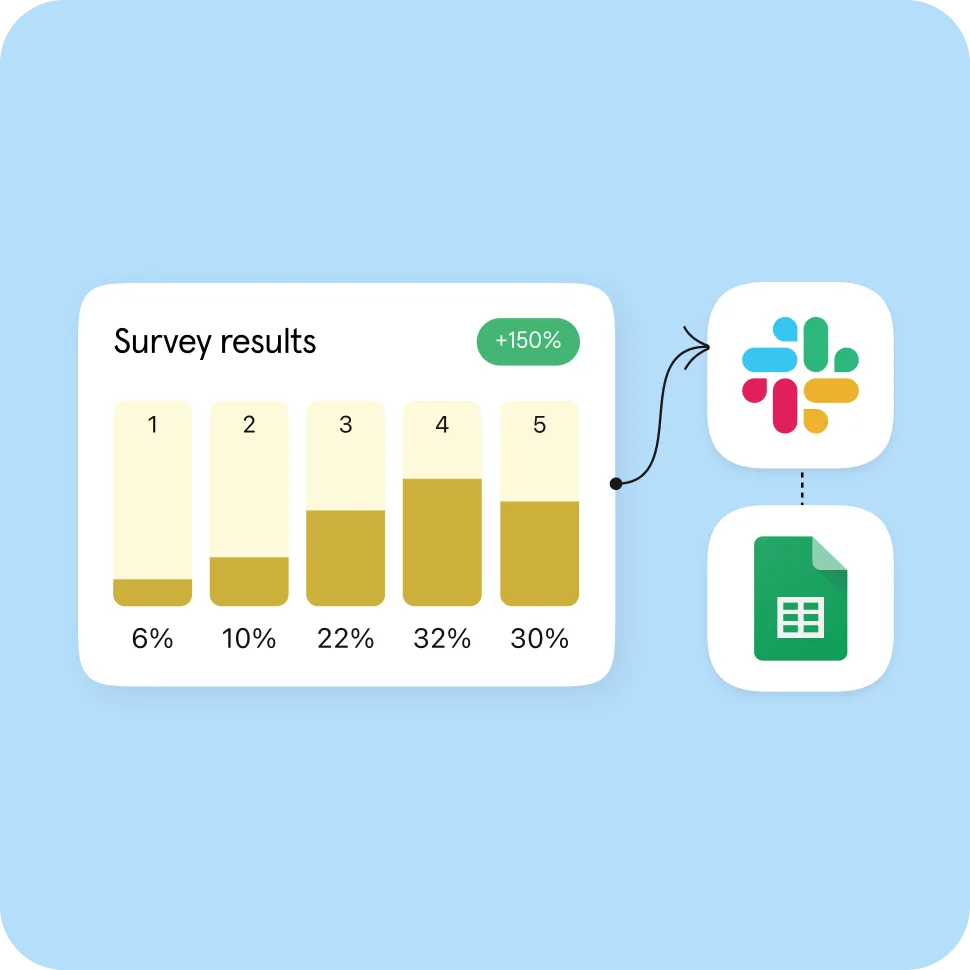 Say hello to a fully connected, effortless workflow. With hundreds of no-code integrations, Typeform keeps you connected to the tools you use most, letting data flow seamlessly between apps.